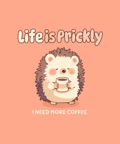 Cartoonish T-Shirt Design Maker Featuring a Hedgehog Drinking Coffee