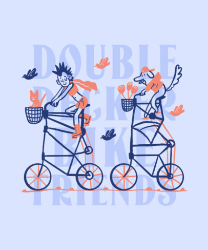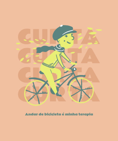 Illustrated T-Shirt Design Template Featuring a Fox Riding a Bike