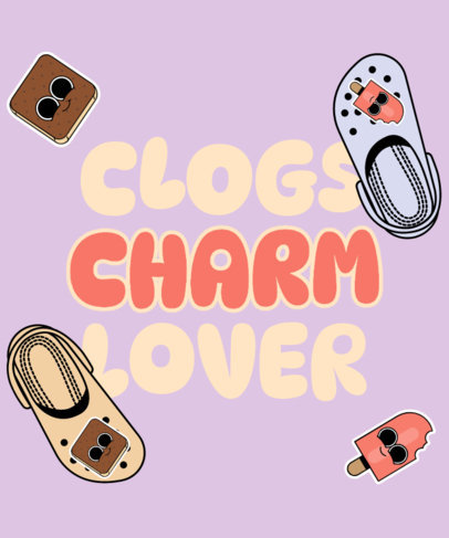 T-Shirt Design Template Featuring Illustrated Clog Shoes and Popsicles
