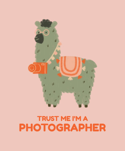 Illustrated T-Shirt Design Template Featuring a Cute Llama With a Camera