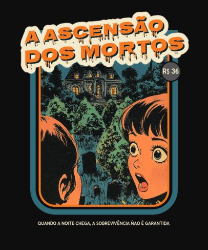 T-Shirt Design Template Featuring an Illustrated Horror Comic Scene