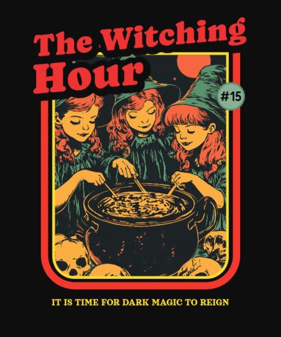 Retro T-Shirt Design Template Featuring Illustrated Kids Mixing a Cauldron with Skulls