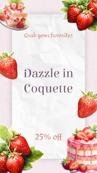 Instagram Story Maker Featuring a Coquette-Inspired Aesthetic With Strawberry Graphics