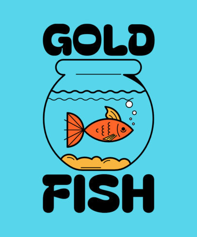 T-Shirt Design Template with a Gold Fish Illustration in a Bowl