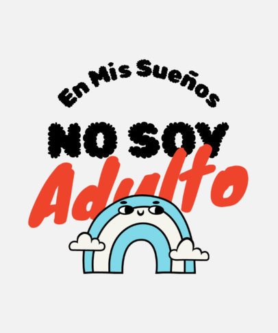 T-Shirt Design Template With a Cartoonish Rainbow and an Adulthood Quote