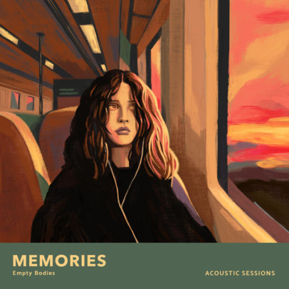R&B Album Cover Template with a Melancholic Illustration of a Girl in a Train