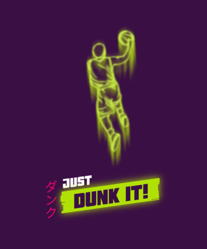 T-Shirt Design Template with a Silhouette of a Basketball Player Performing a Dunk