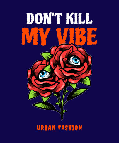 Urban T-Shirt Design Template Featuring Bizarre Roses with Eyes