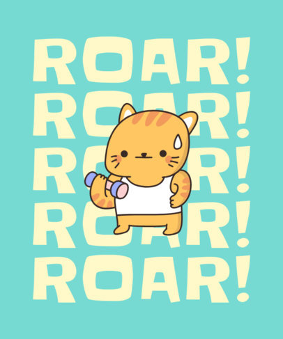 T-Shirt Design Template with the Illustration of a Cat Doing Bicep Curls