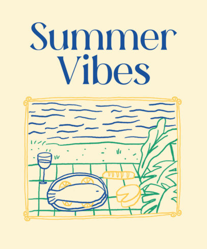 T-Shirt Design Maker Featuring an Illustrated Picnic Setting at the Beach