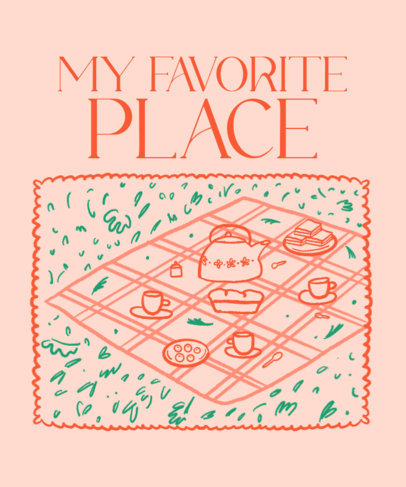 T-Shirt Design Template Featuring an Illustrated Picnic Setting with Food