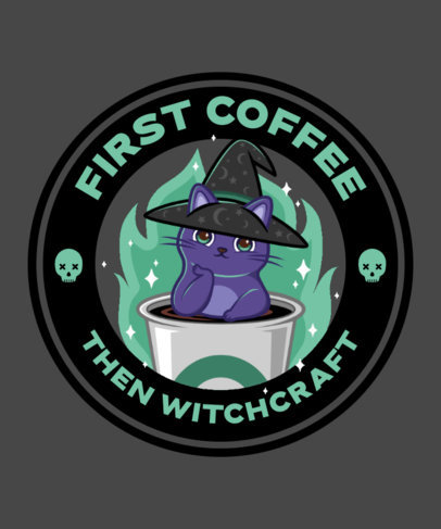 Starbucks-Inspired T-Shirt Design Generator Featuring an Emblem With a Witch Cat