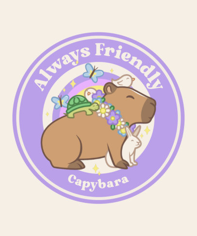 Cute T-Shirt Design Template Featuring a Capybara Graphic and a Starbucks-Inspired Emblem