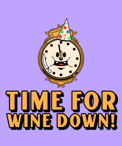 T-Shirt Design Template Featuring a Cartoonish Clock Illustration for New Year's Eve