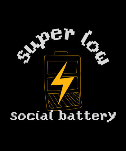 T-Shirt Design Generator Featuring a Drained Battery Graphic with a Social Anxiety Quote