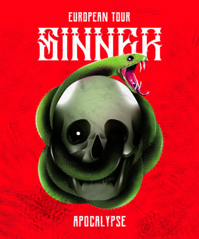 Band Tour T-Shirt Design Maker Featuring a Skull and a Snake
