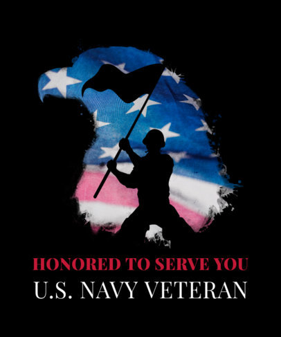 T-Shirt Design Template Honoring Veterans Day with a Soldier Waving a Flag