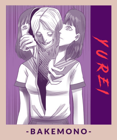 T-Shirt Design Maker with a Terrifying Bakemono Yokai Illustration Inspired by Junji-Ito