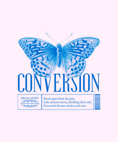 T-Shirt Design Maker Featuring a Butterfly with a Quote and a Bar Code