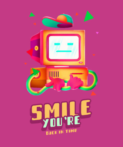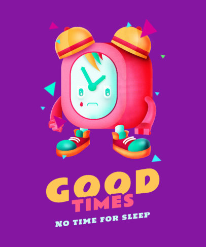 Colorful T-Shirt Design Template with an Isometric Alarm Clock Character