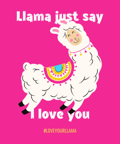 Animals T-Shirt Design Template Featuring a Llama and a Loving Quote