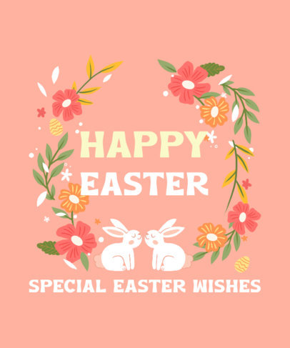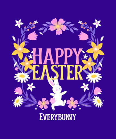 Easter T-Shirt Design Template Featuring Illustrations of Bunnies and Flowers