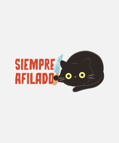 Cat-Themed T-Shirt Design Template Featuring a Kawaii Animal With a Knife