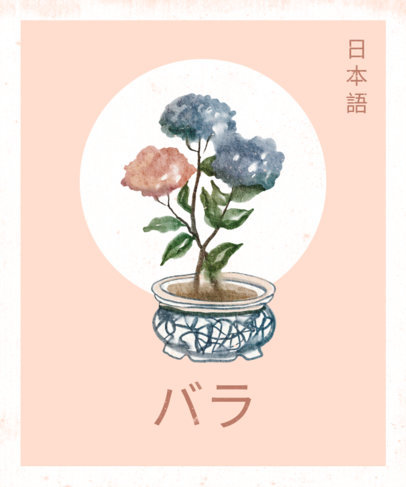 T-Shirt Design Template with the Illustration of a Miniature Sakura Tree