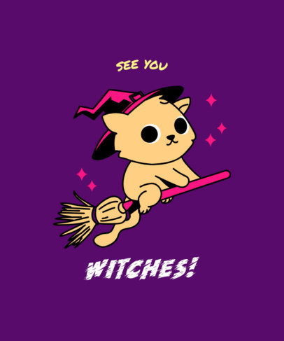 Halloween T-Shirt Design Creator Featuring a Cat Riding a Flying Broom