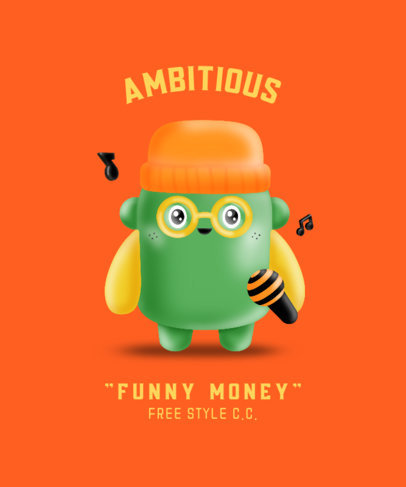 T-Shirt Design Template with an Imaginary Cartoon Holding a Microphone