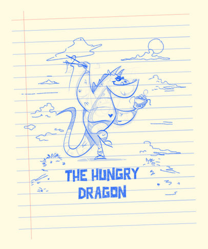T-Shirt Design Maker with a Sketch of a Lazy Dragon Featuring a Notebook-Like Background