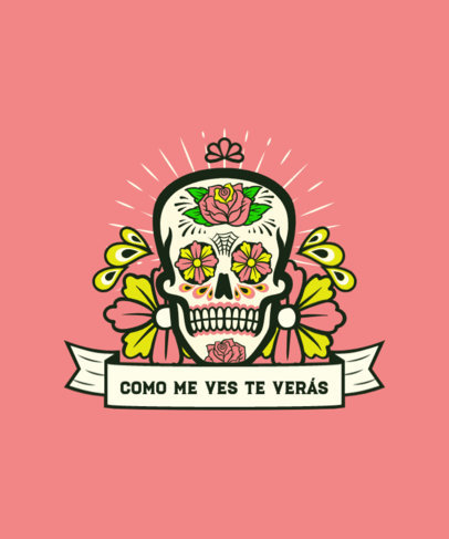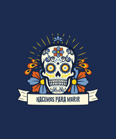 Dia de Muertos-Themed T-Shirt Design Creator with a Decorated Skull Illustration