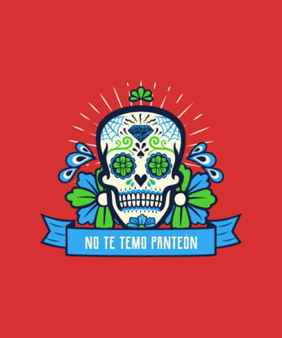 T-Shirt Design Template for Dia de Muertos Featuring a Skull with Mexican-Folklore Decorations