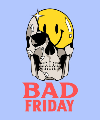 T-Shirt Design Template Featuring a Shiny Skull Illustration