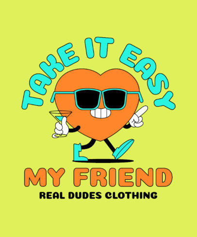 Illustrated T-Shirt Design Template Featuring a Cartoonish Heart Character