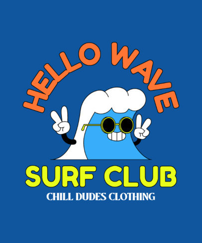 T-Shirt Design Template Featuring a Cartoonish Wave with Sunglasses