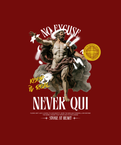 T-Shirt Design Template Featuring an Illustrated God with Modern Quotes
