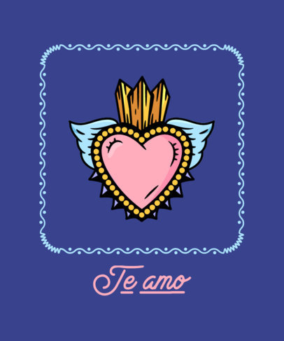 T-Shirt Design Template with an Illustrated Winged Heart and a Loving Quote