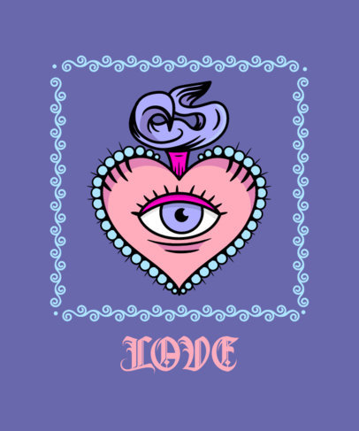 T-Shirt Design Template Featuring a Traditional Heart with an Eye