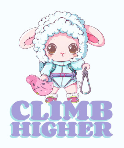 T-Shirt Design Template with a Cute Sheep Cartoon Dressed for Climbing