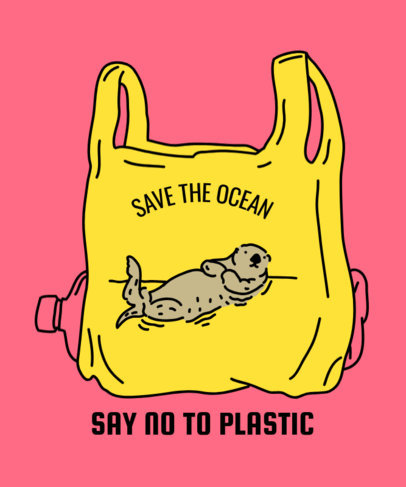 Ocean Rescue T-Shirt Design Maker Featuring an Otter in a Plastic Bag