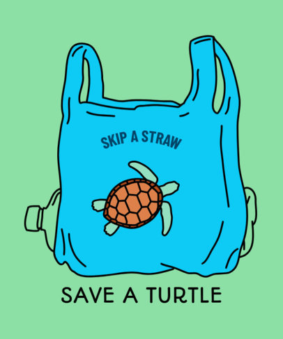 Anti-Straw T-Shirt Design Template Featuring a Sea Turtle