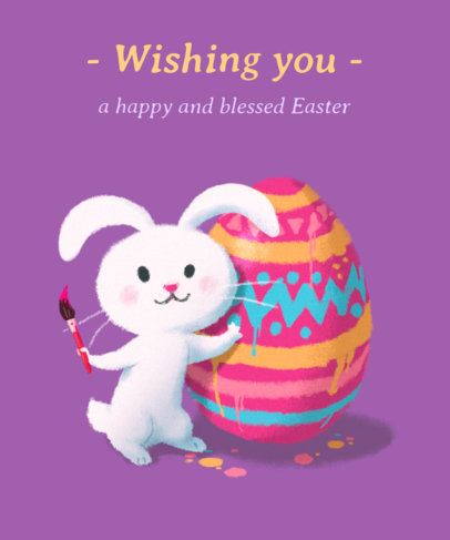 T-Shirt Design Template with an Illustration of a Bunny Decorating an Egg