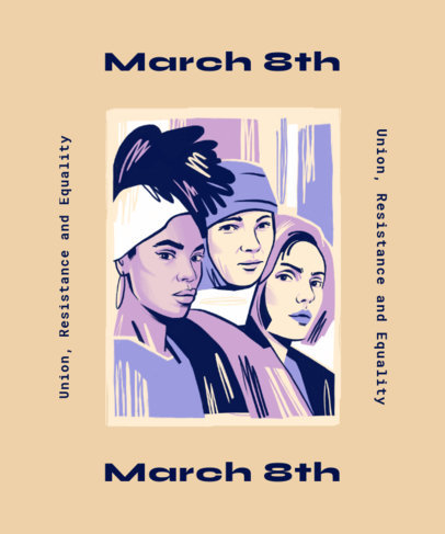 T-Shirt Design Template for Women's Day Featuring Three Women