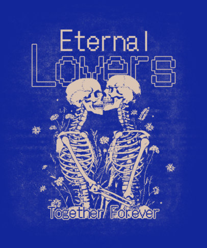 T-Shirt Design Template Featuring Illustrated Skeletons Kissing Each Other