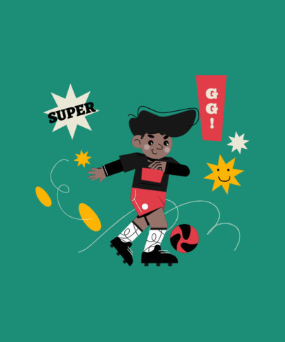 T-Shirt Design Template Featuring a Flat Illustration of an Active Soccer Player