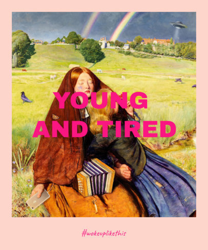 Funny T-Shirt Design Maker Featuring a Painting of a Young and Tired Woman