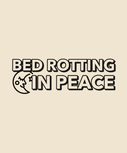 T-Shirt Design Template with a Sleeping Moon and a Bed Rotting Quote