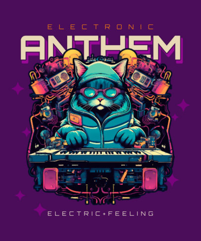 T-Shirt Design Template with a Cartoonish Musician Cat Playing a Synth