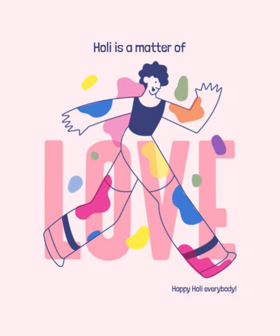 Colorful T-Shirt Design Maker for Holi Festival Featuring a Love Message